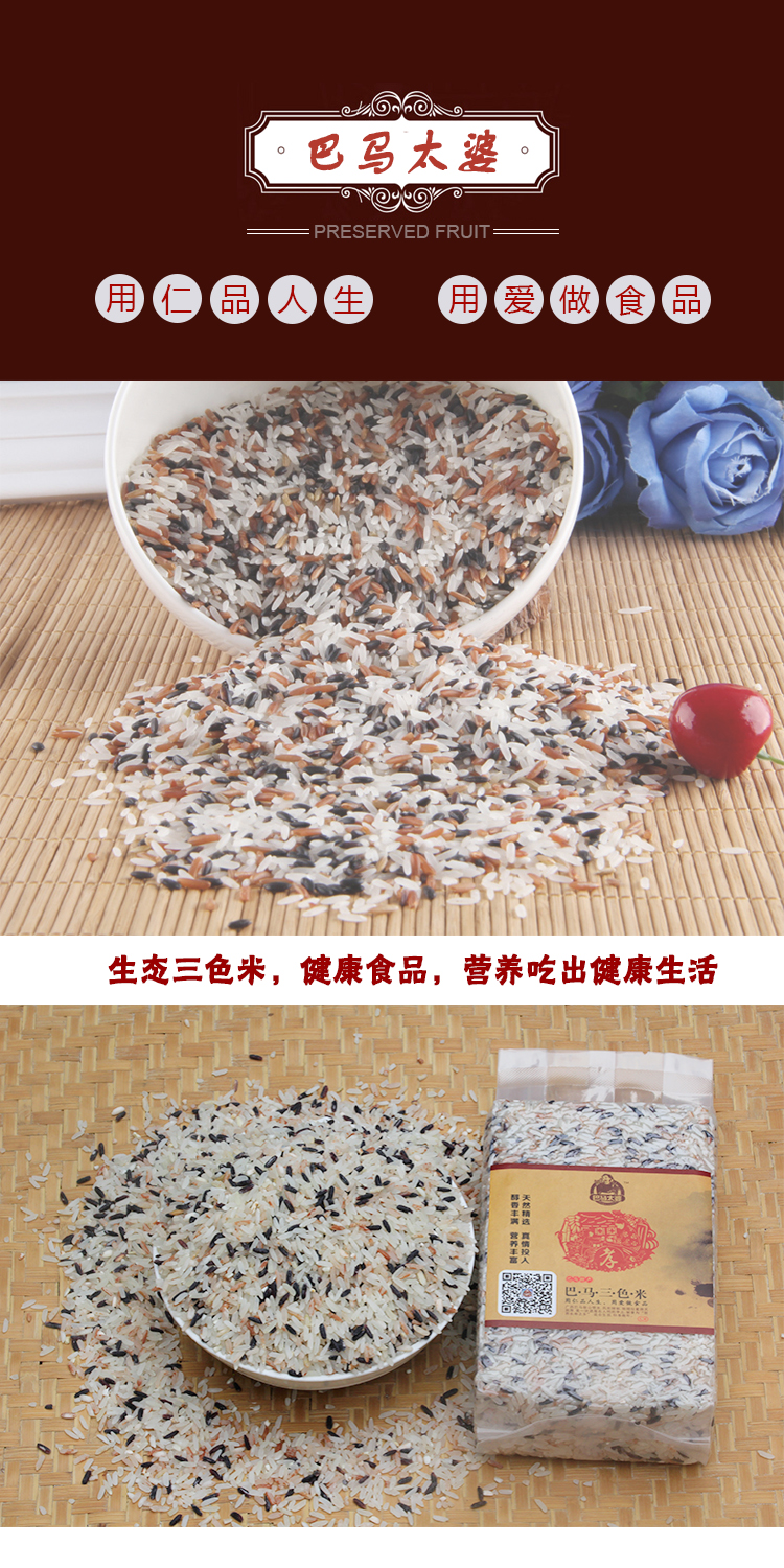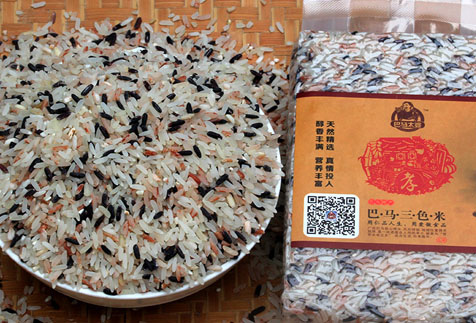 三色米是由冷水香米、墨米、红米三种颜色的米组合而成,是巴马人独创的食品,也是长寿老人的主食之一,煮出的米饭口感好且营养均衡。
