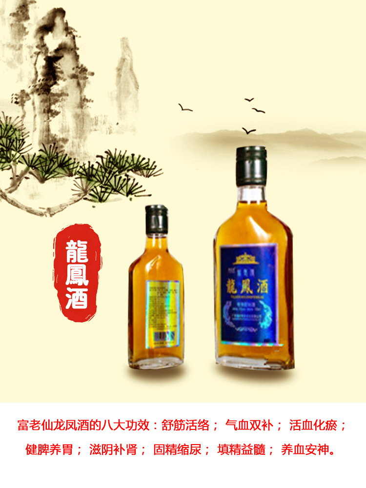 功效:富老仙龙凤酒的八大功效:舒筋活络; 气血双补; 活血化瘀;健脾养胃; 滋阴补肾; 固精缩尿; 填精益髓; 养血安神。